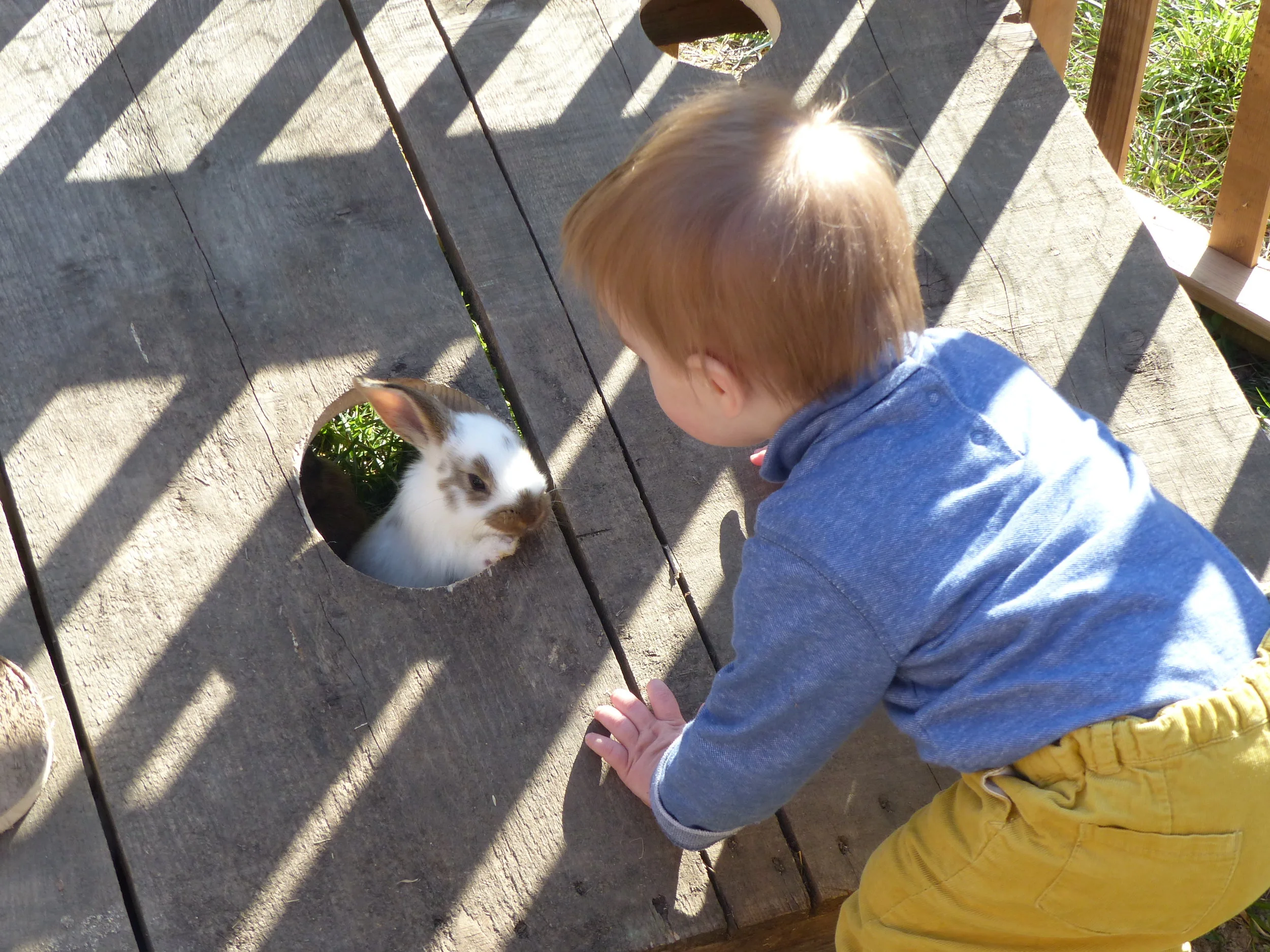 Au travers de jeux et d’histoires, nous effectuerons les soins nécessaires au bien être de nos animaux (foin et herbes pour nos petits ruminants, poignées de grains à distribuer pour notre basse-cour, ramassage des œufs).